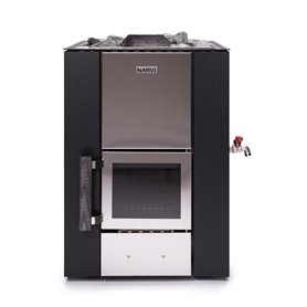 Vedeldat Bastuaggregat Narvi Kuru med Vattenbehållare från Narvi är ett kvalitativt bastutillbehör utformat för att skapa en avslappnande och harmonisk bastuupplevelse.